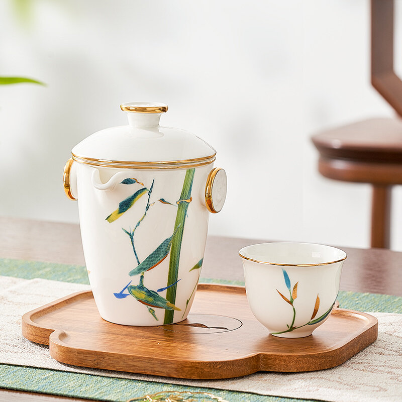 华光国瓷骨瓷快客杯一壶二杯户外旅行便携式套装茶具家用送礼青竹