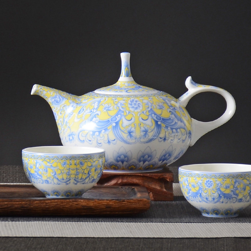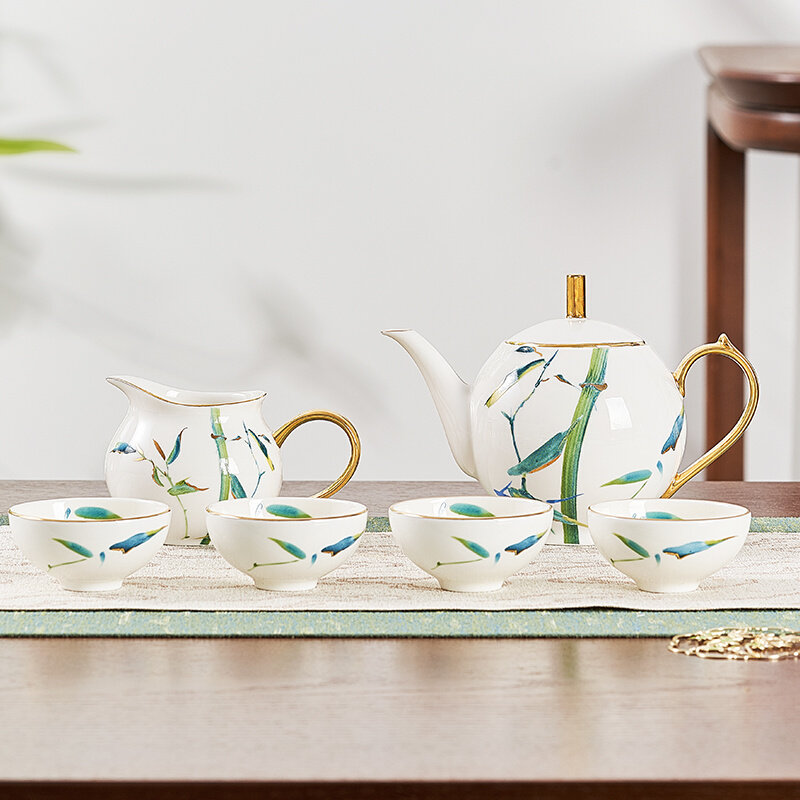 淄博华光国瓷 茶具套装陶瓷茶具组合功夫茶杯茶具家用办公白金竹