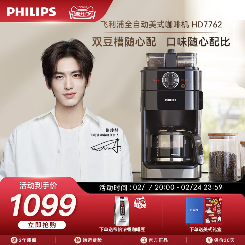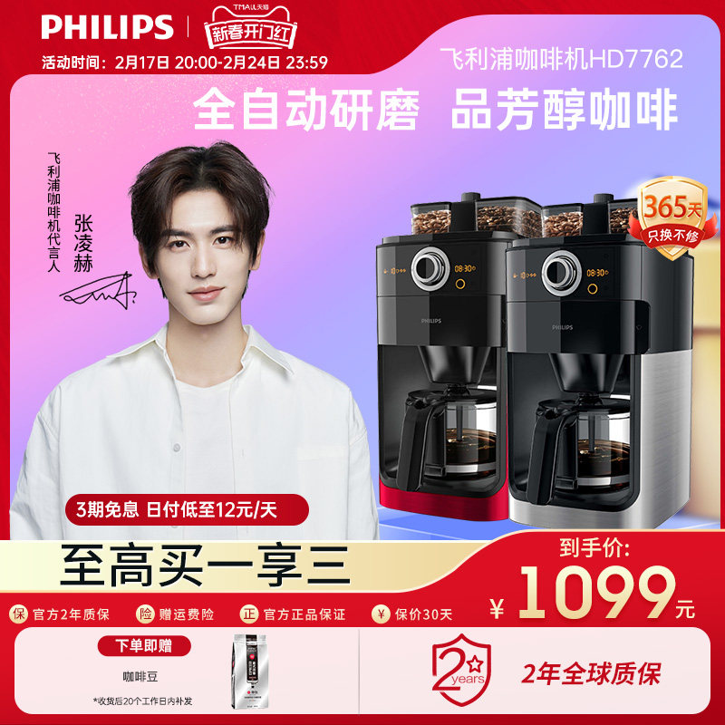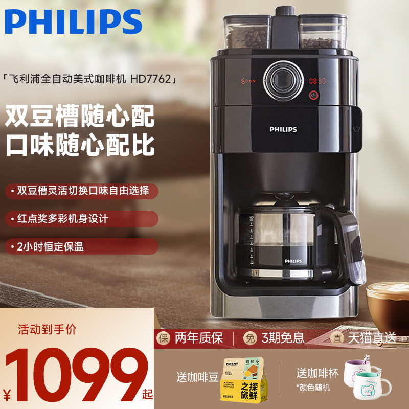 philips飞利浦HD7762家用滴漏式全自动美式咖啡机研磨一体