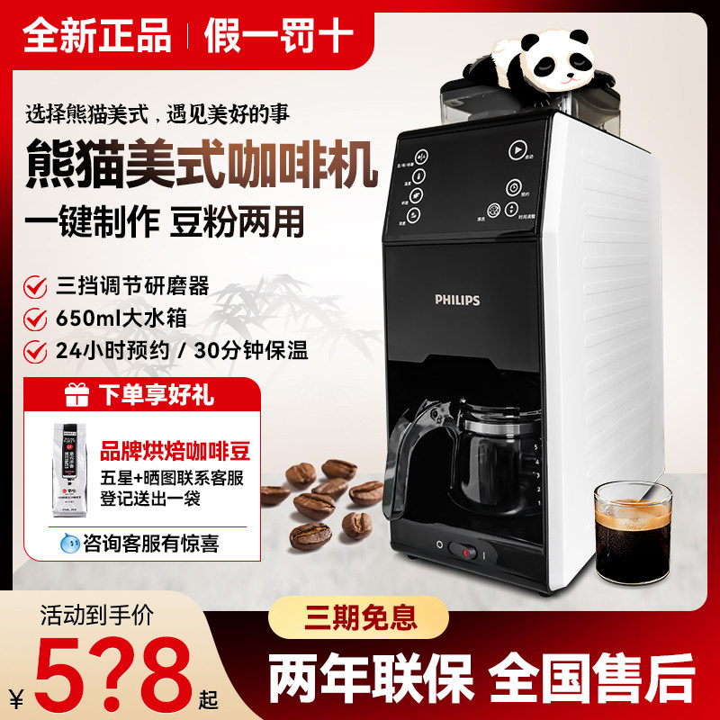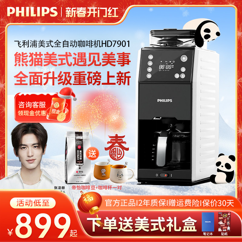 【新品】飞利浦美式全自动咖啡机HD7901家用小型研磨一体熊猫机