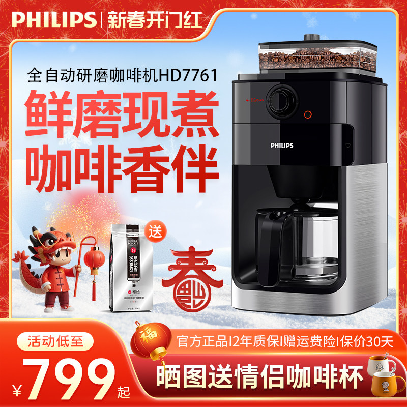 飞利浦HD7761美式咖啡机家用小型全自动研磨一体办公室磨豆半自动