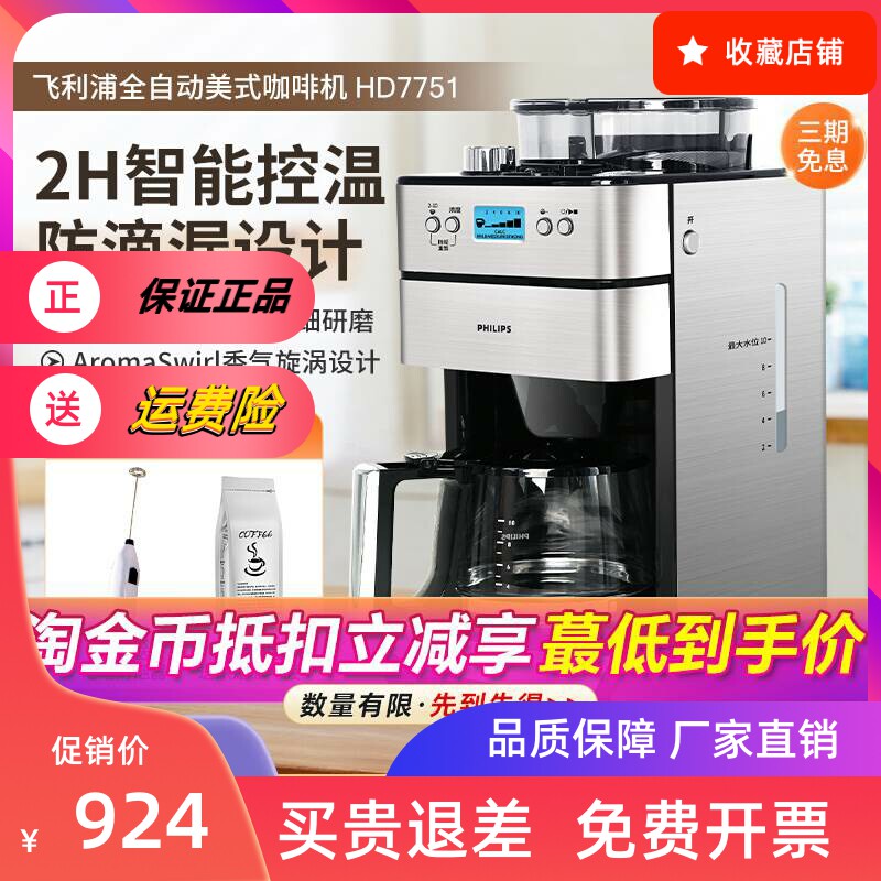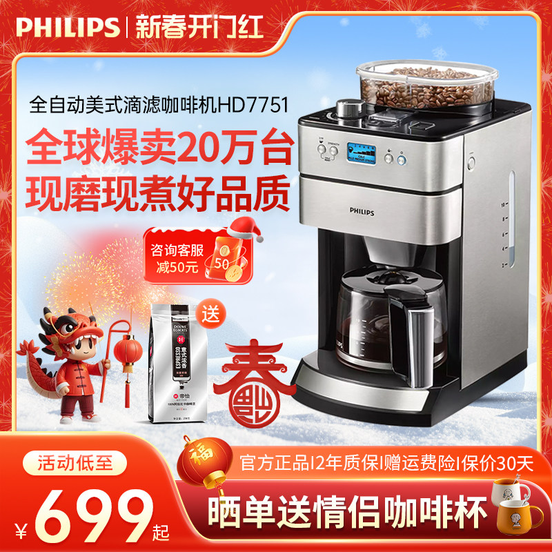 飞利浦咖啡机HD7751全自动美式咖啡带研磨家用办公室一体专业商用