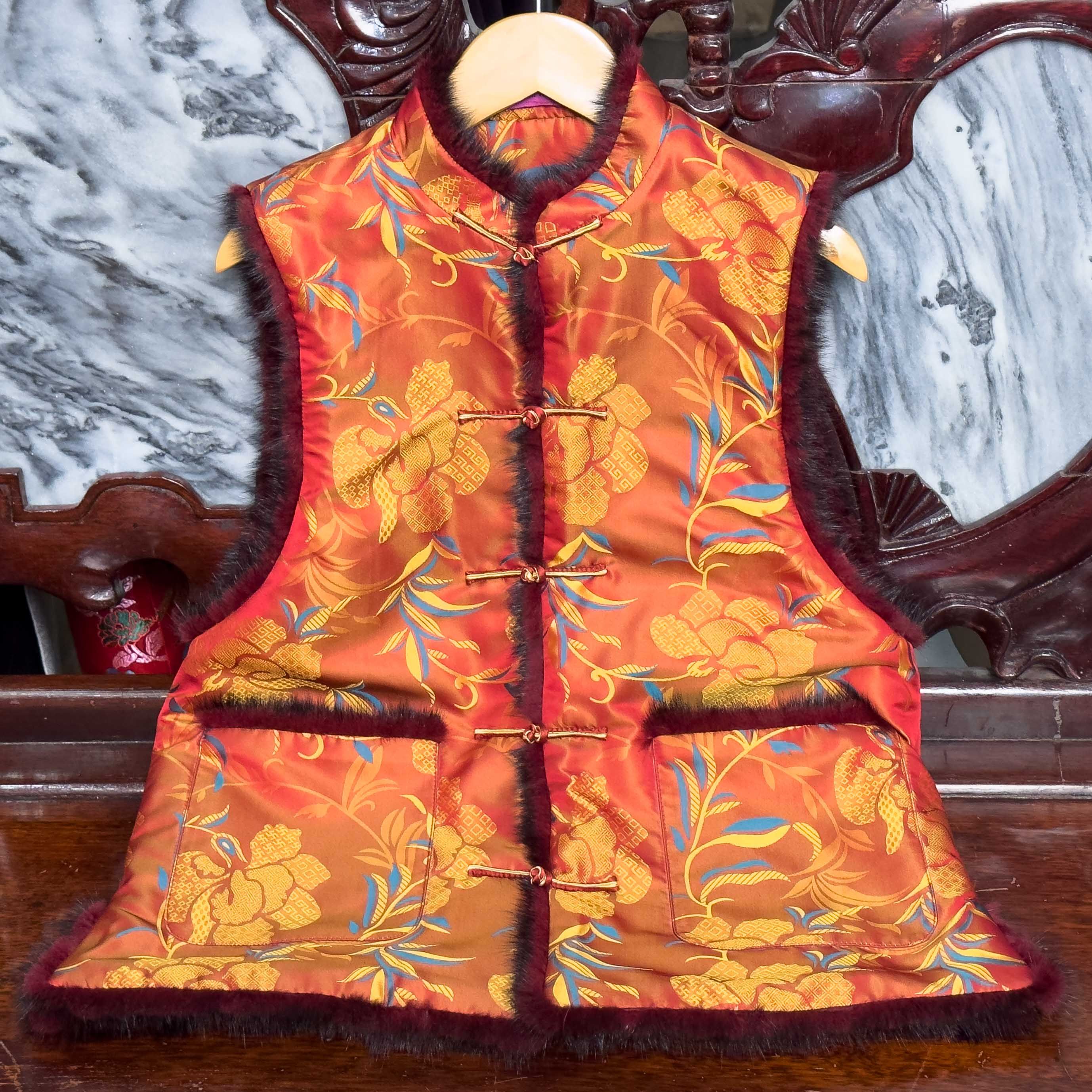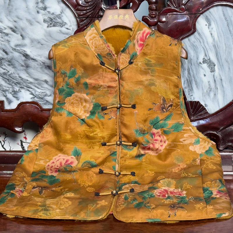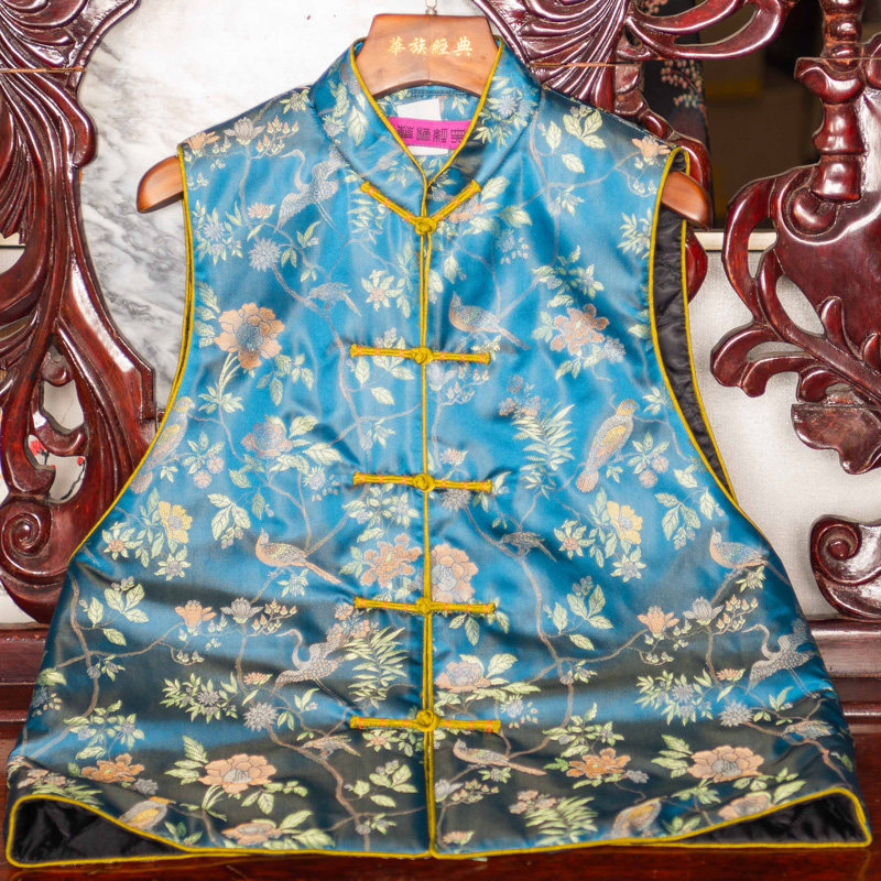 华族经典(小阁佳音)40姆云纱两面可穿中国风唐装马夹背心女秋冬