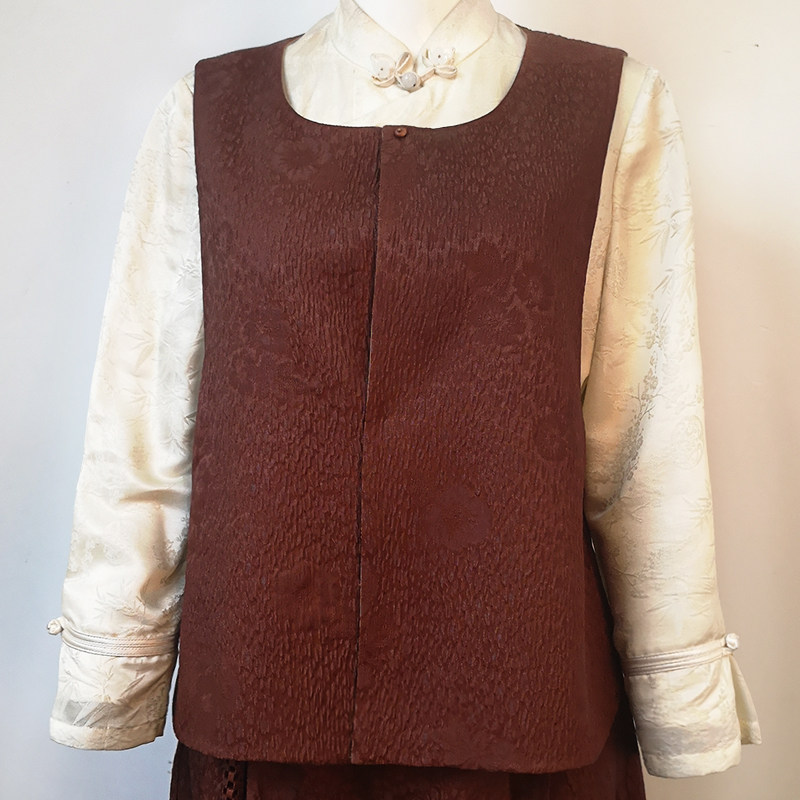 华族经典温柔相拥香云纱夹棉加厚复古中国风百搭汉服唐装马甲背心