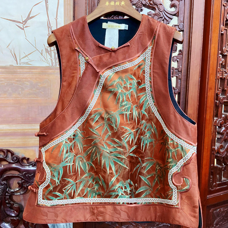 华族经典(水墨文竹)重缎真丝香云纱复古唐装马甲国风优雅背心