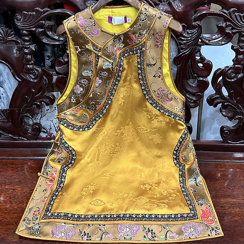 华族经典姿绮真丝桑蚕丝宋锦马甲短款复古中国风唐装背心上衣外套