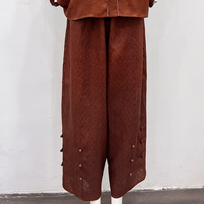 华族经典【夏墨】红云纱宽松半松紧阔腿裤