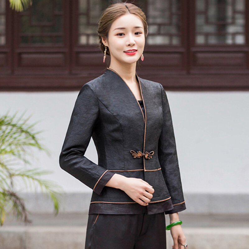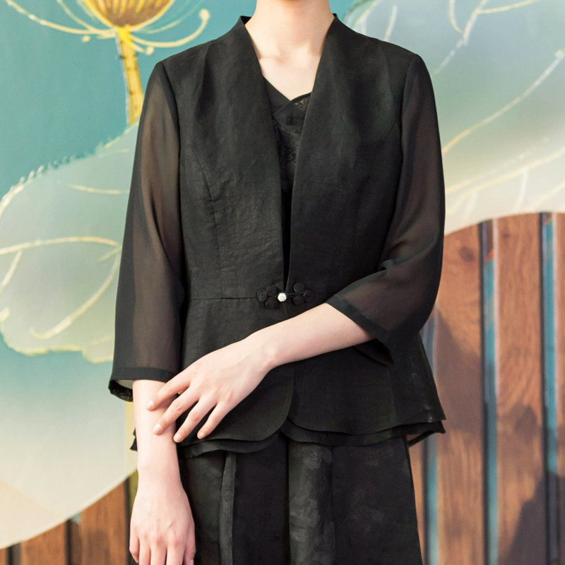 华族经典香云纱西装外套改良日常时尚黑色龟纹旗袍外披百搭款