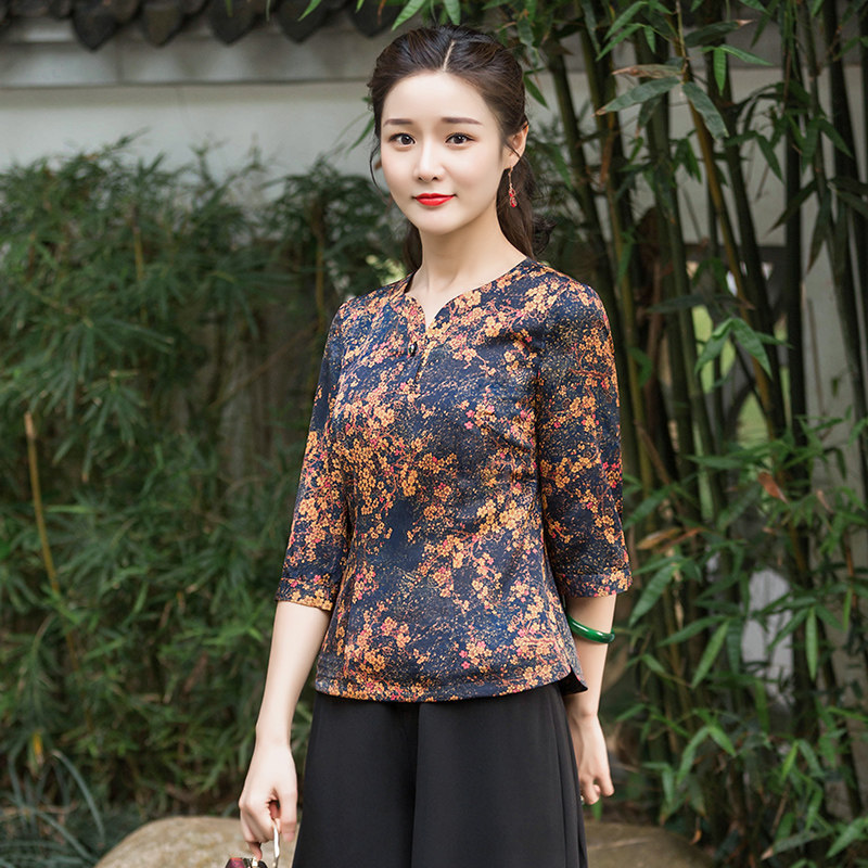 华族经典映花红香云纱唐装女装中国风妈妈中式复古盘扣旗袍上衣秋