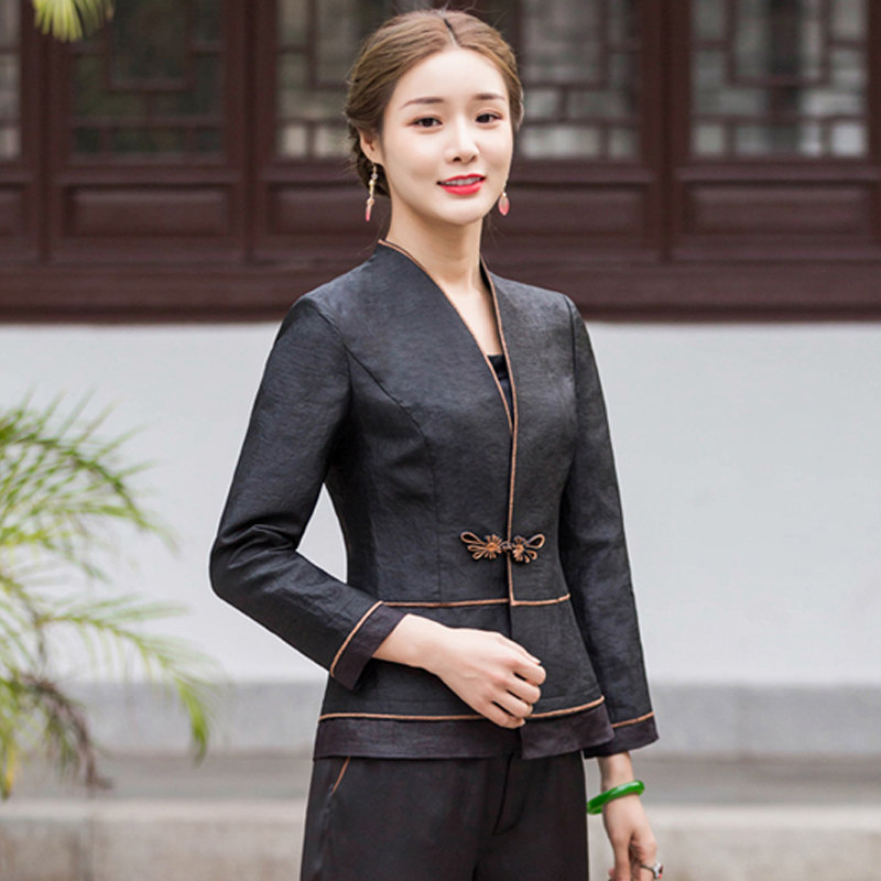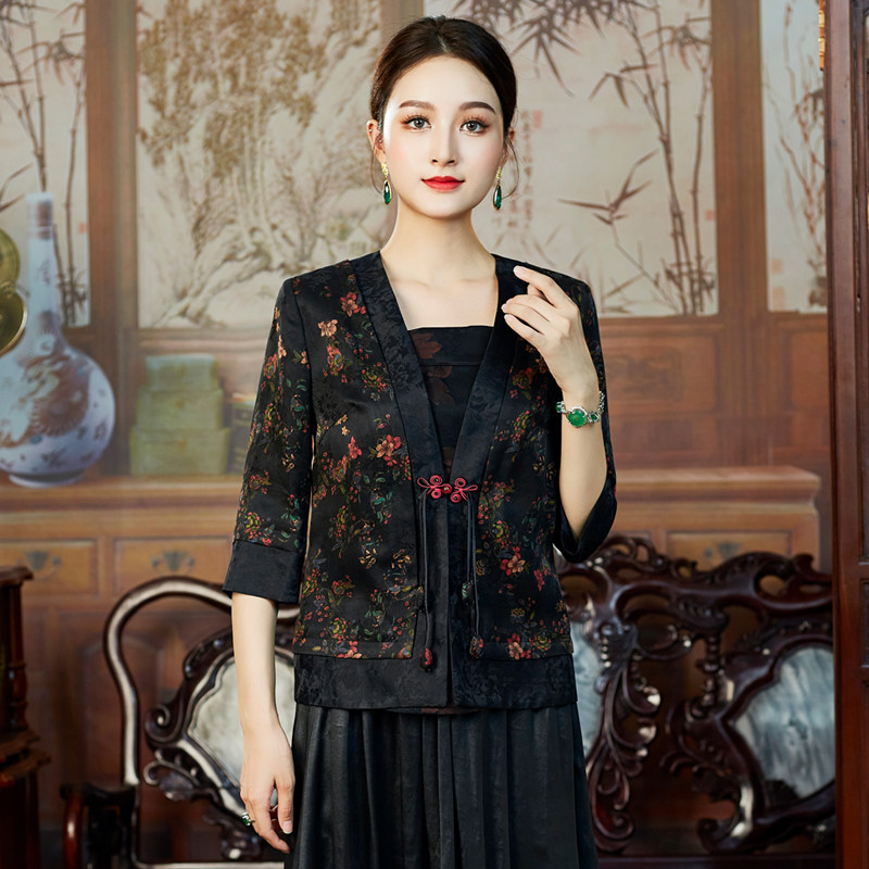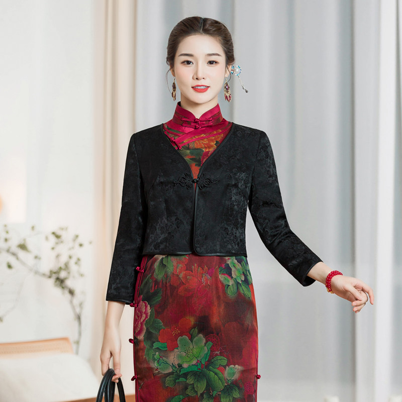 华族经典旗袍外套秋冬新款日常改良百搭黑色香云纱唐装长袖短外套