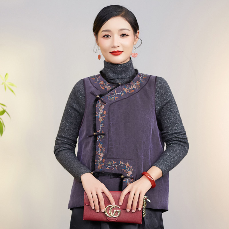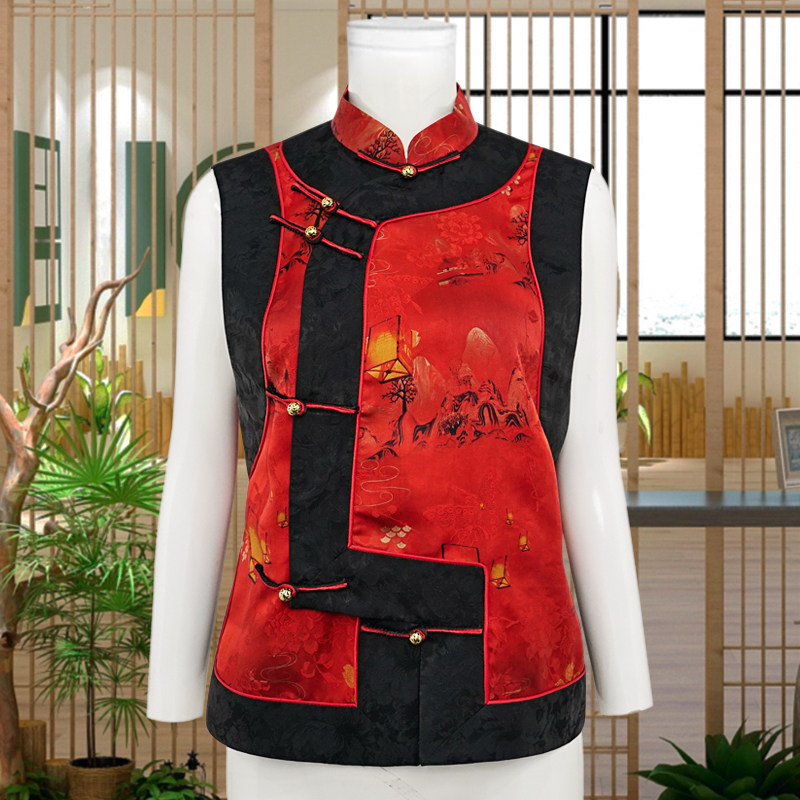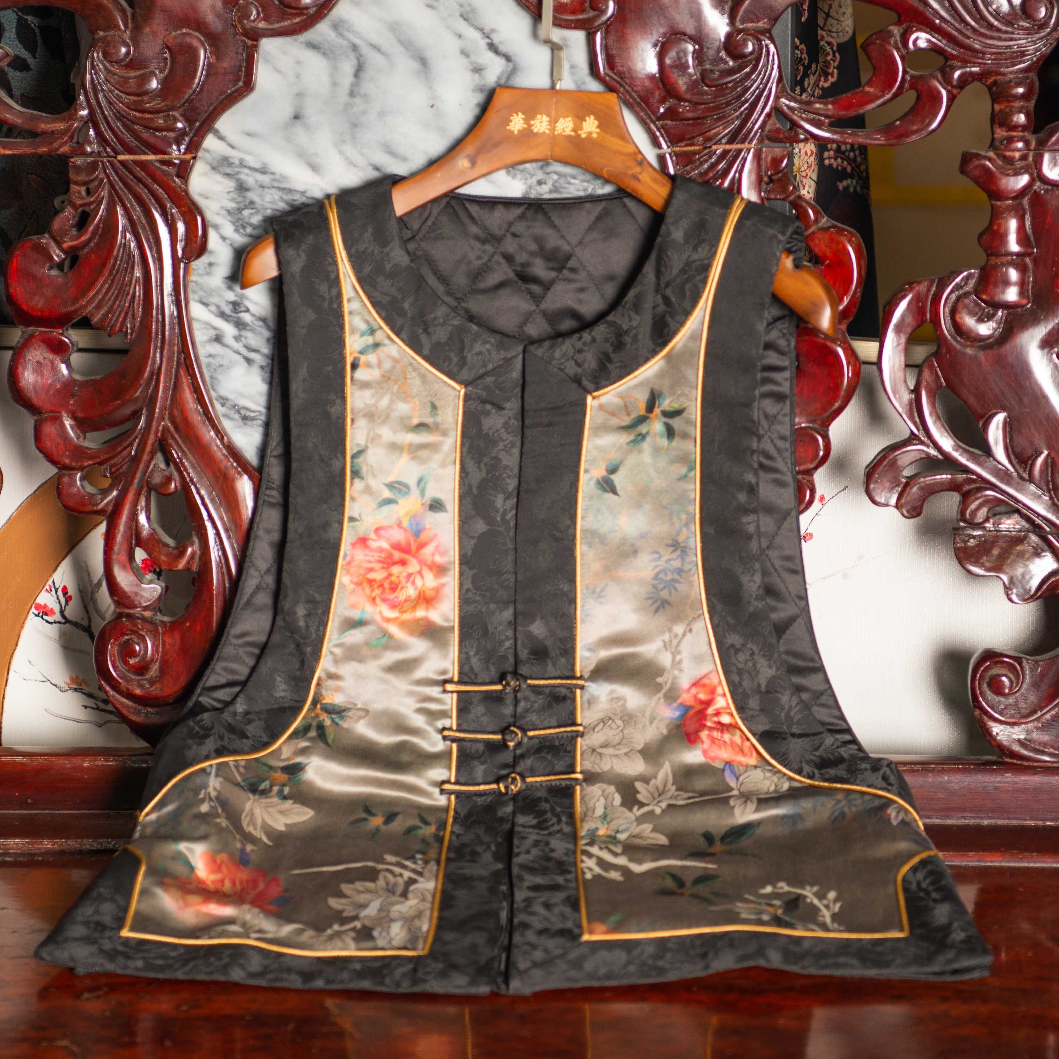 华族经典(暖安)中式秋冬加厚保暖香云纱复古双襟百搭唐装马甲背