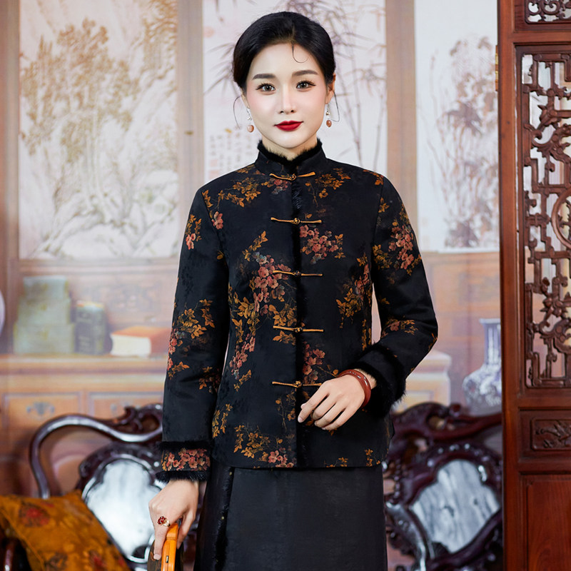 华族经典冬雪中式女装香云纱唐装小棉袄秋冬款加厚中国风旗袍上衣