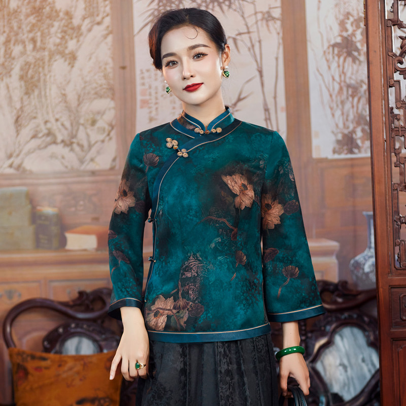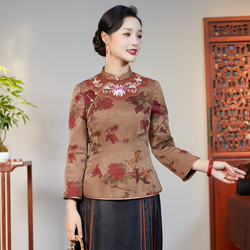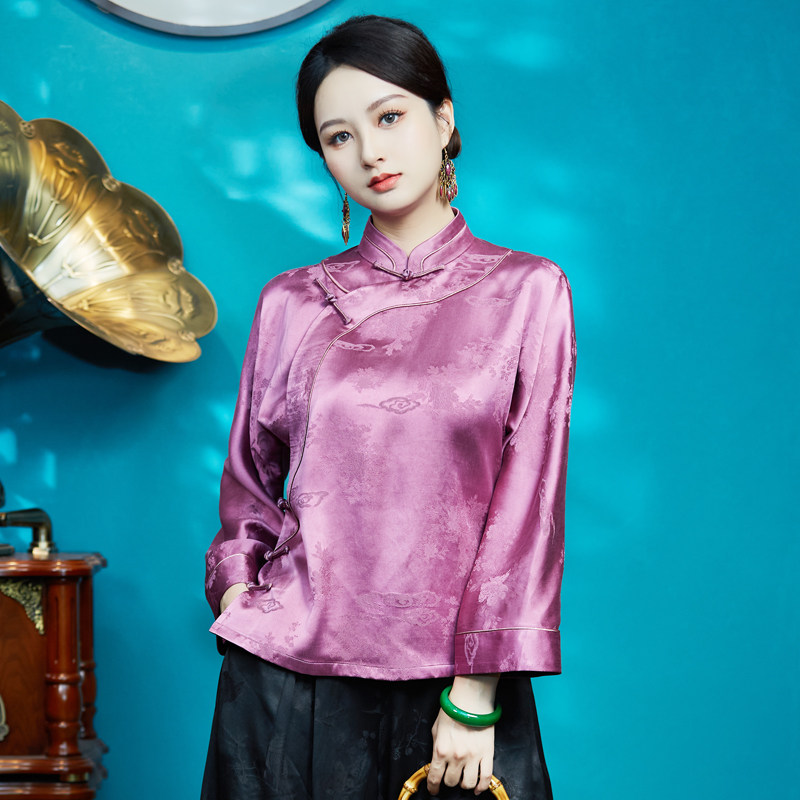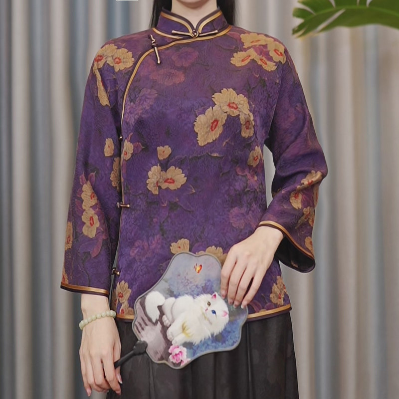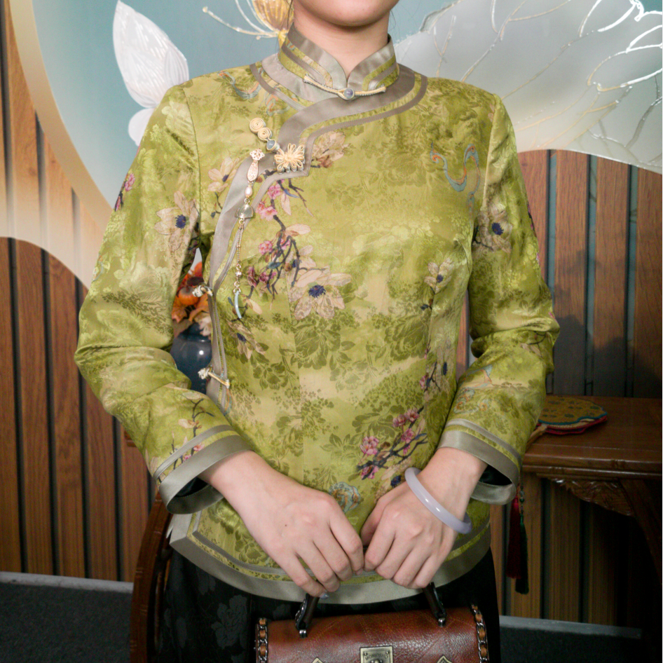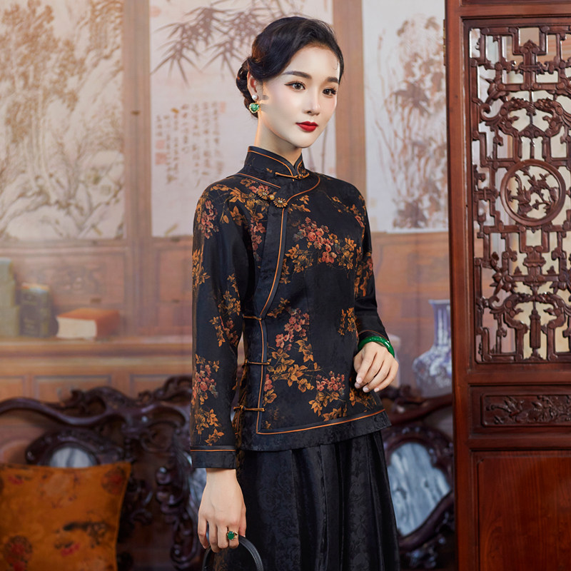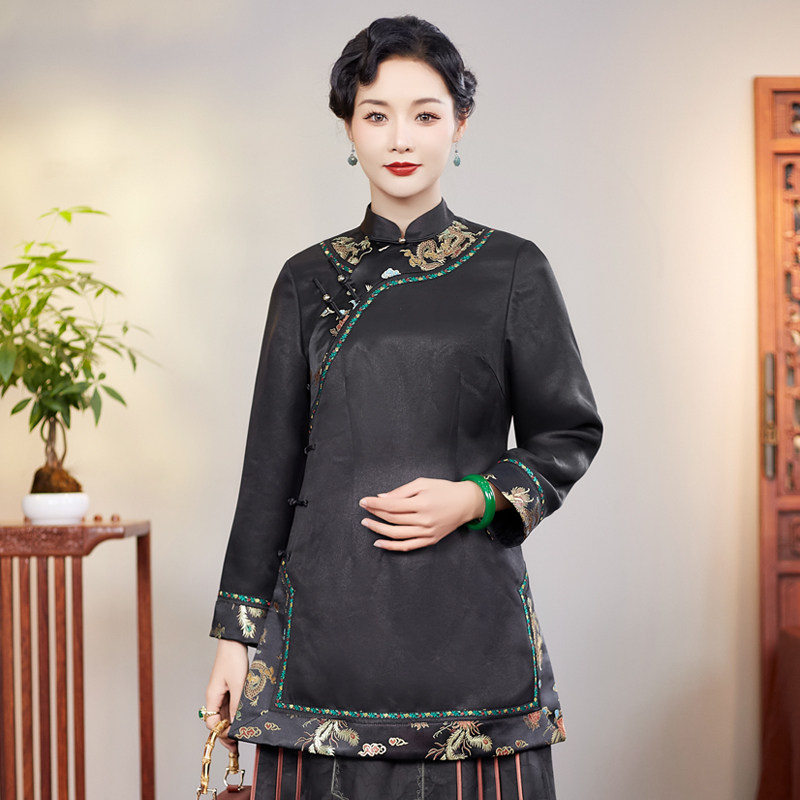 华族经典唐装女冬装香云纱夹棉加厚气质显瘦款开襟民国风旗袍上衣
