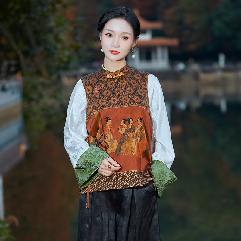 华族经典温柔相拥香云纱夹棉加厚复古中国风百搭汉服唐装马甲背心
