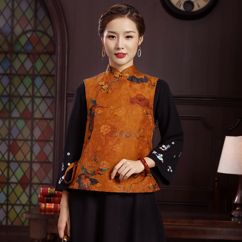 华族经典唐装女初安中式复古中国风重锻香云纱加厚旗袍上衣中长款