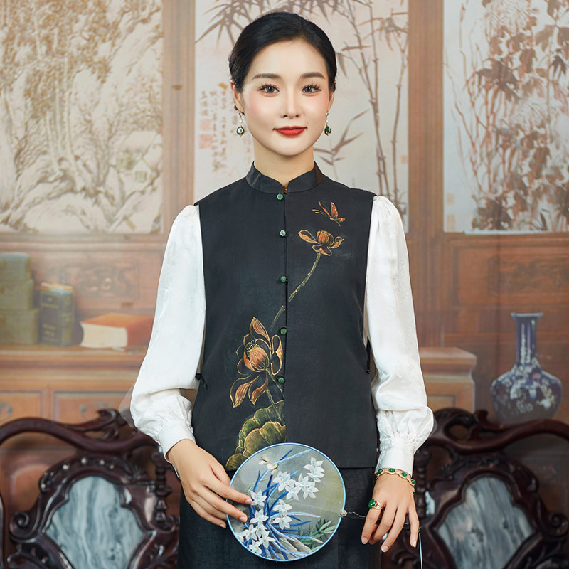 华族经典马甲女高端香云纱重工如意中式复古唐装外搭背心陌上芳菲