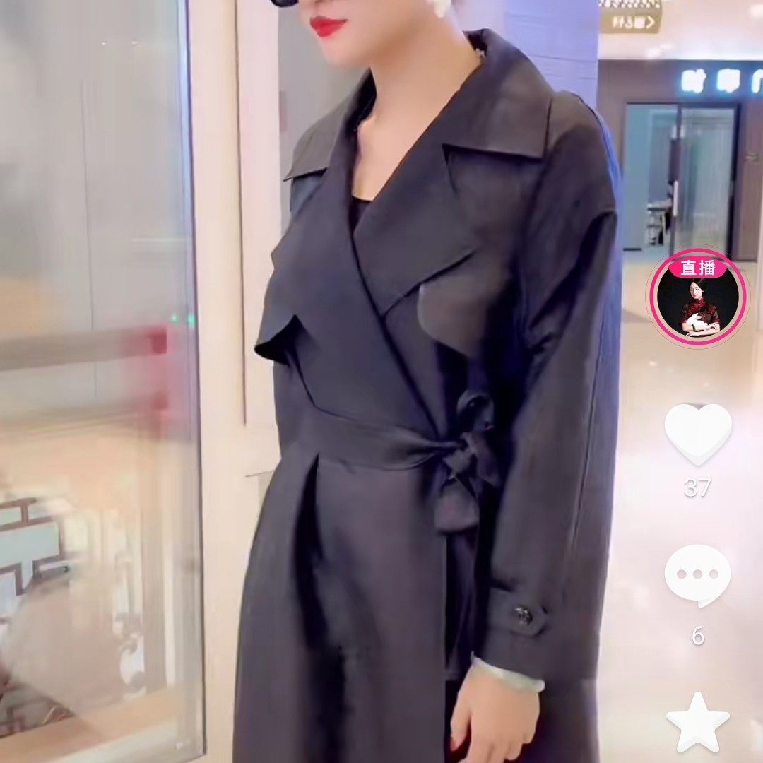 华族经典气质优雅黑色龟裂纹香云纱旗袍百搭风衣外套中长款秋冬款
