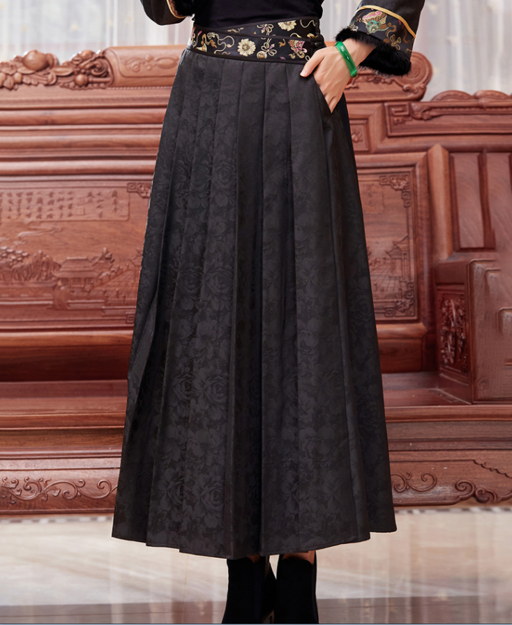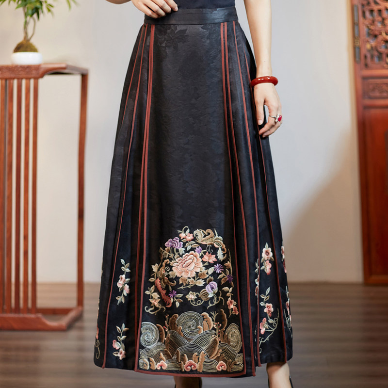 华族经典悦颜半身裙高腰复古显瘦显瘦高端刺绣花国风香云纱马面裙