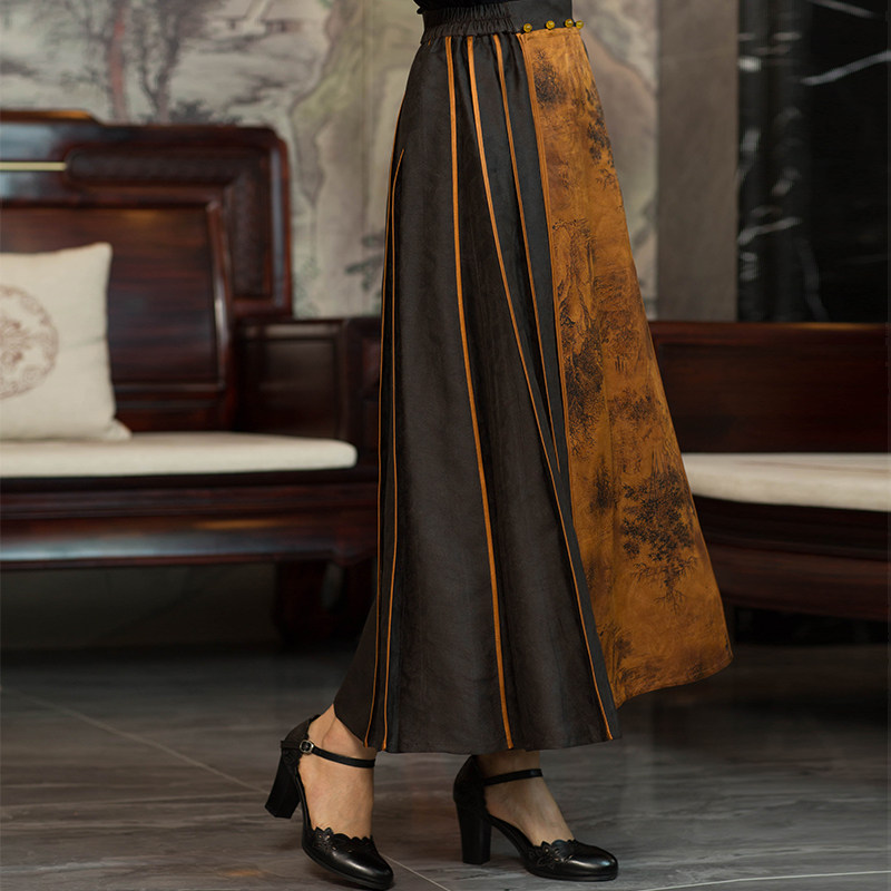 华族经典美人如画香云纱马面裙百搭显瘦前片可拆卸旗袍唐装半身裙
