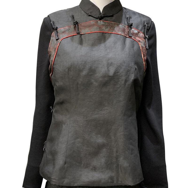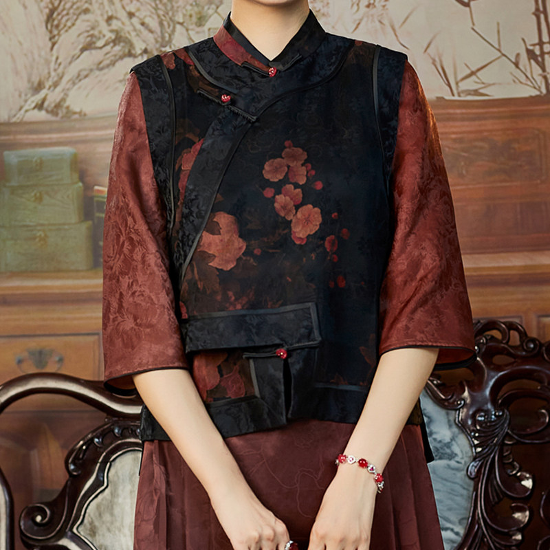 华族经典(闲月庭花)香云纱马甲开襟中式复古民国风盘扣唐装上衣