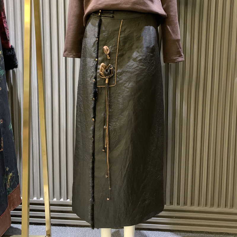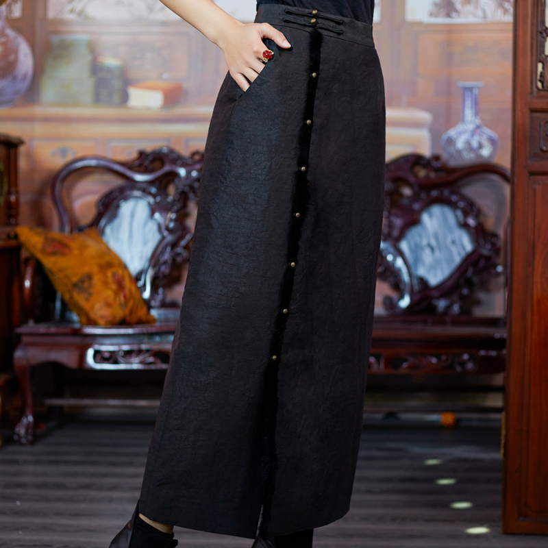 华族经典香云纱复古一步裙长款冬款夹棉加厚保暖直筒裙女一见倾心