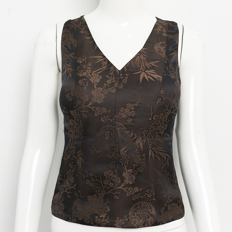 华族经典梦清枝50姆米重锻香云纱定位花高端气质淑女中国风马甲