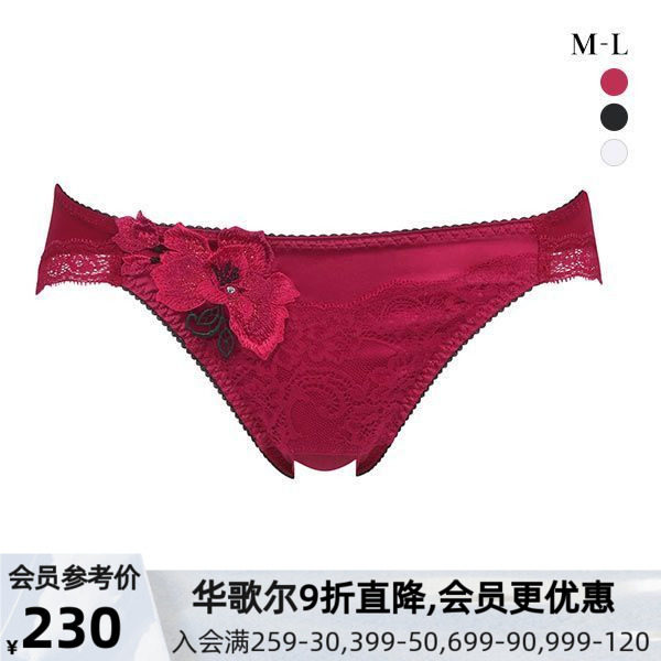 华歌尔Wacoal Wing内裤女透气立体刺绣红色蕾丝性感低腰三角裤