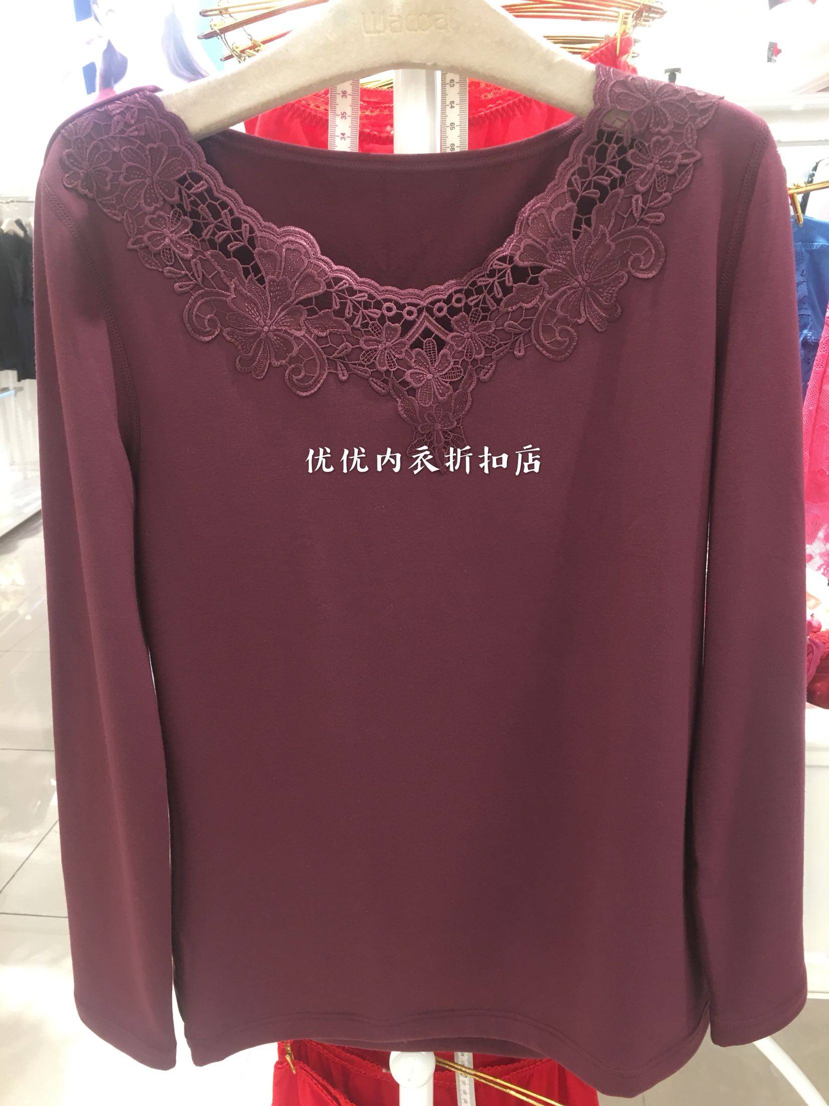 新品华歌尔 WV6222 钻石领长袖蕾丝边打底衣保暖抗菌女士上衣499