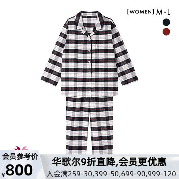 日本华歌尔Wacoal睡衣套装女纯棉双面拉毛保暖秋冬长袖长裤居家服