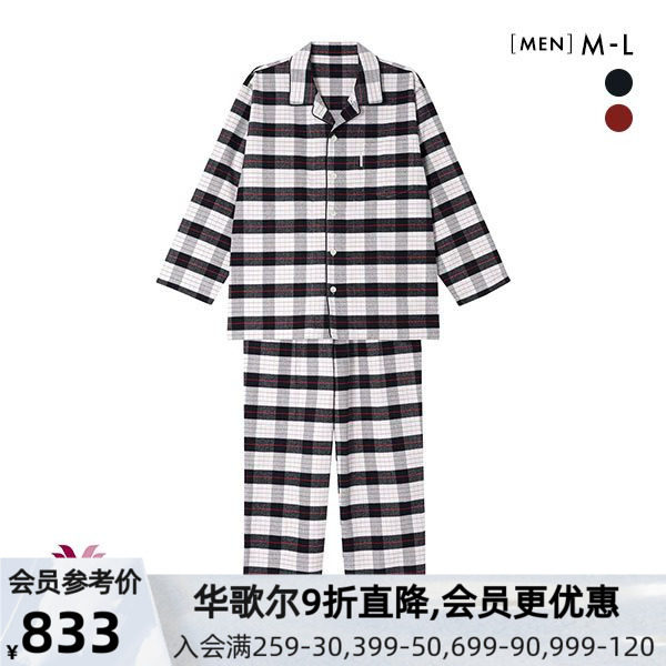 日本华歌尔Wacoal睡衣套装男纯棉双面拉毛保暖秋冬长袖长裤居家服