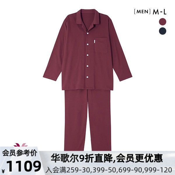 华歌尔Wacoal睡衣套装男日本制纯棉保暖透气红色长袖长裤居家服