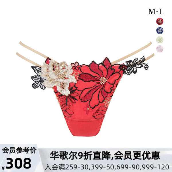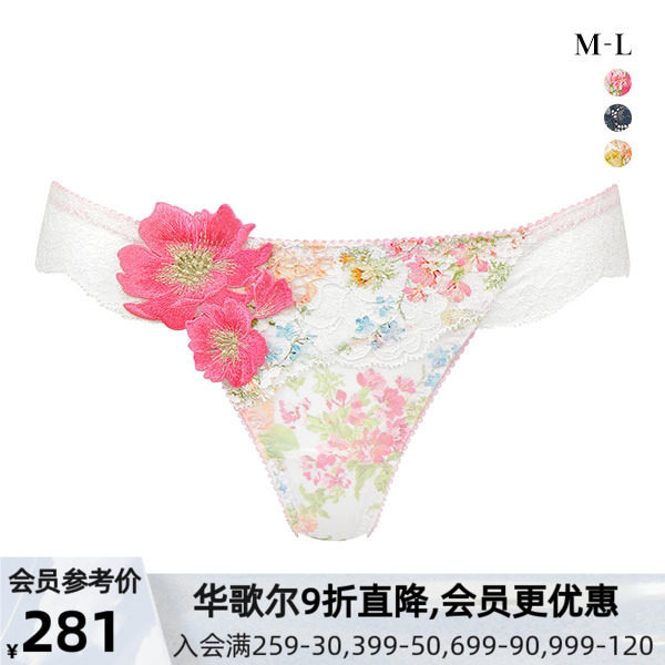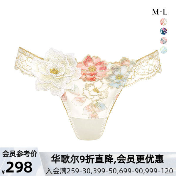 华歌尔Wacoal Salute内裤重工奢华刺绣性感低腰细带丁字T裤女92G
