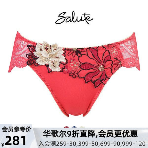 华歌尔Wacoal Salute内裤女弹力蕾丝刺绣性感低腰红色三角裤96G