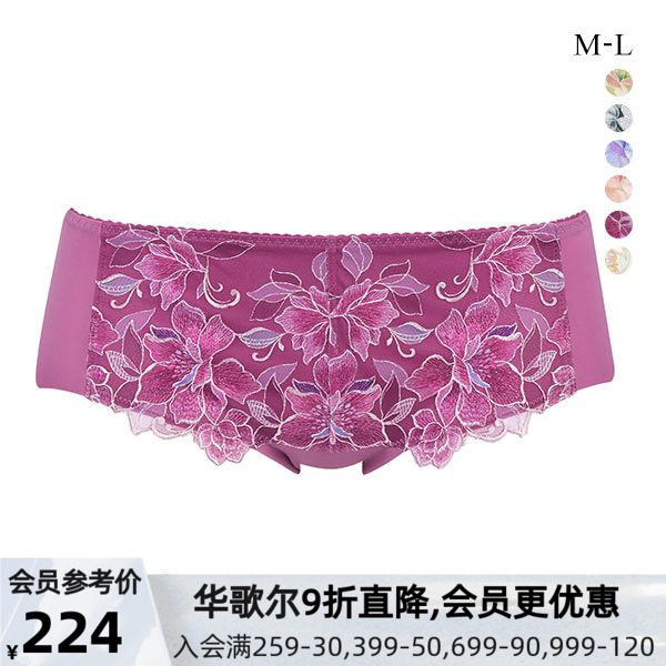 华歌尔Wacoal Salute内裤重工蕾丝边刺绣性感舒适低腰平角裤女91G