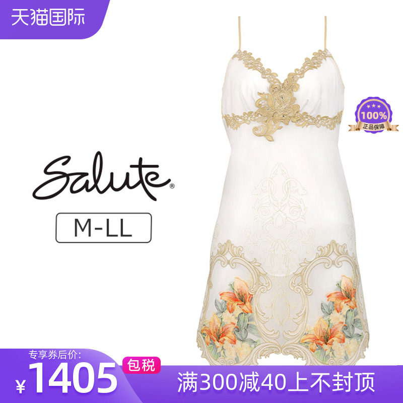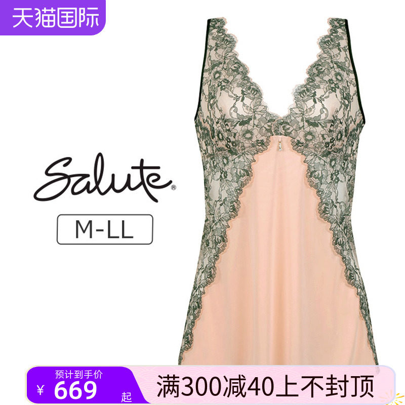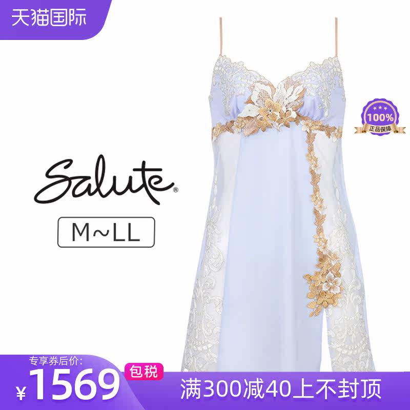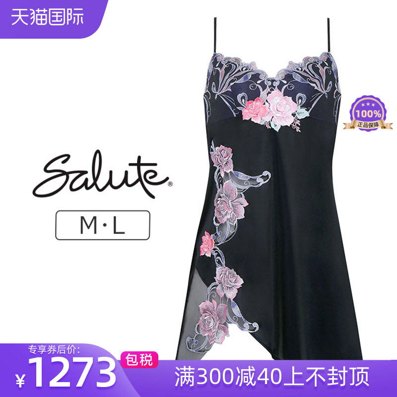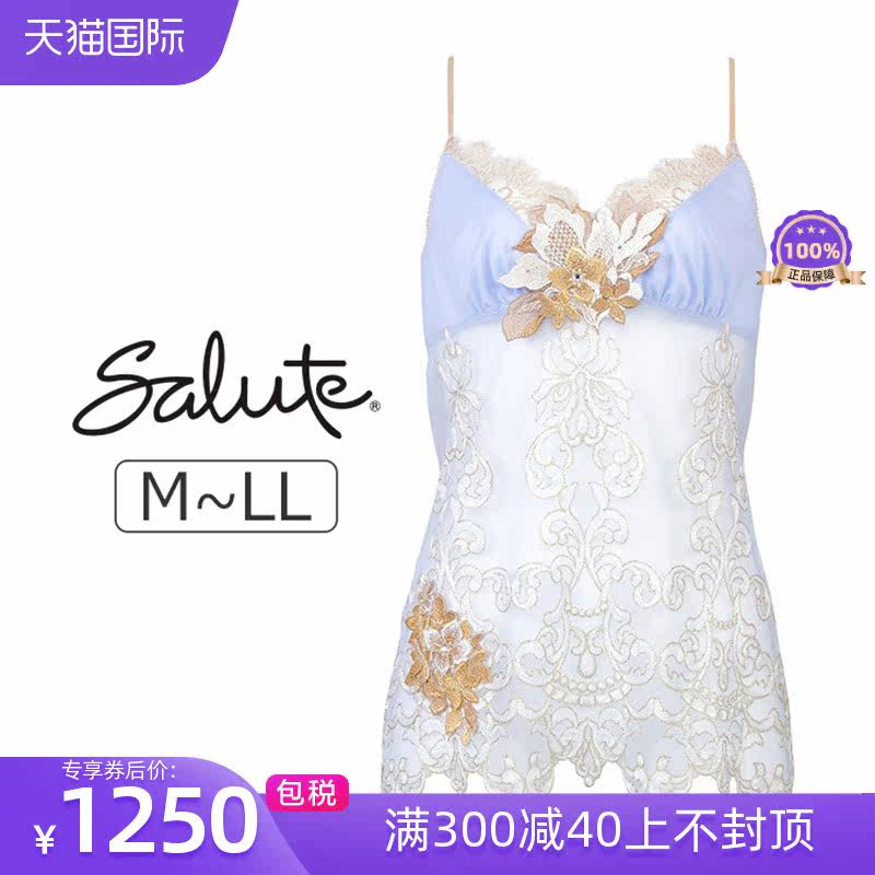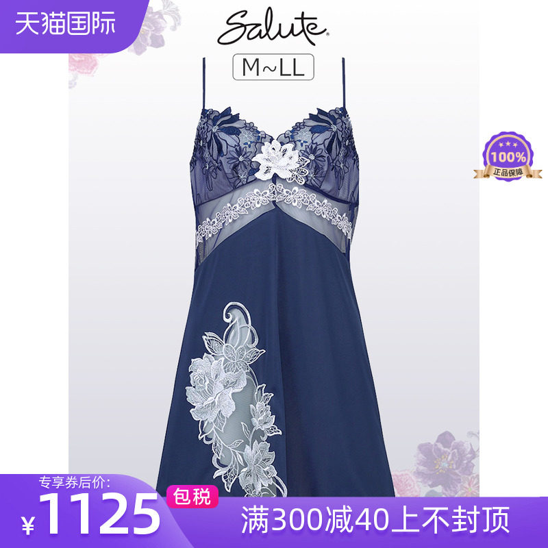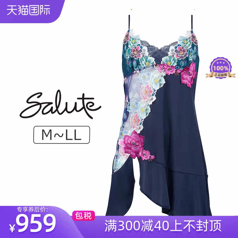 SALUTE日本制 华歌尔性感奢华半透中长款吊带裙 精美刺绣睡裙 202