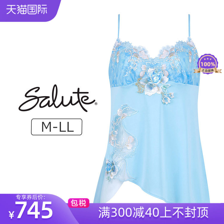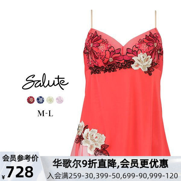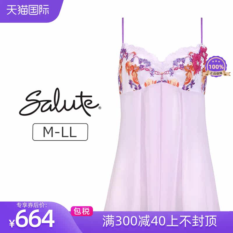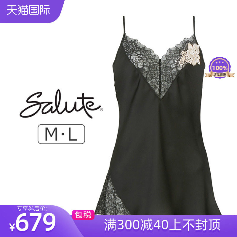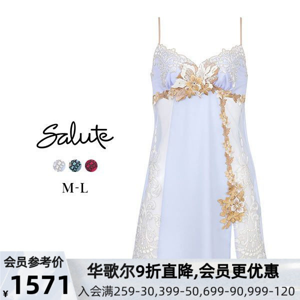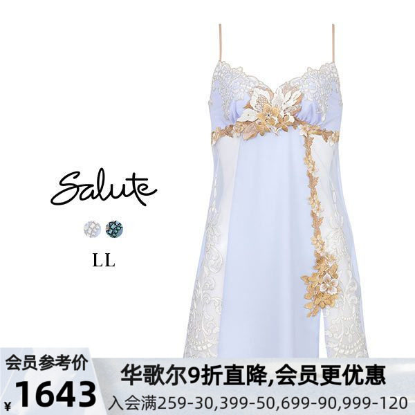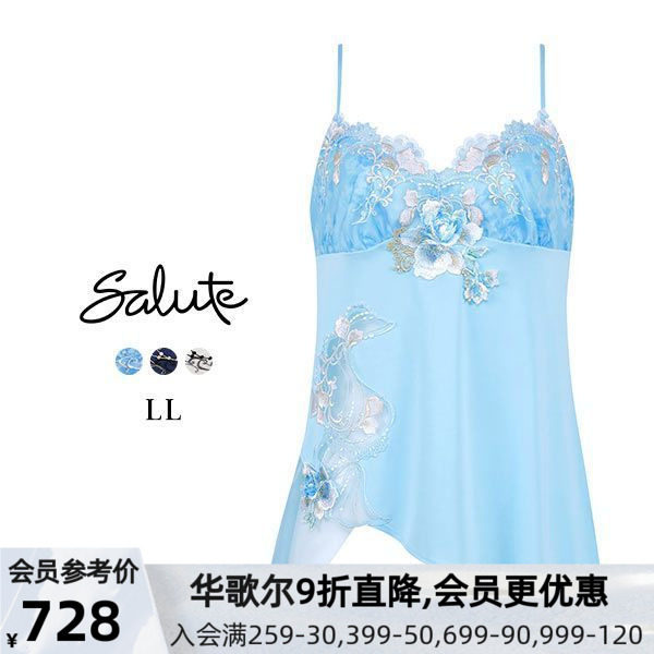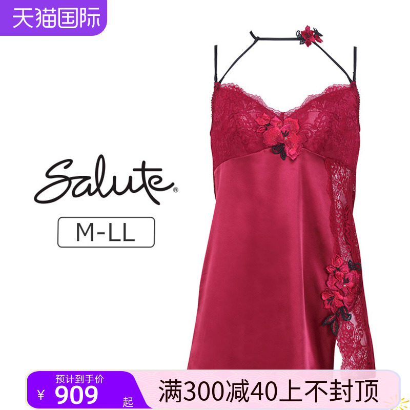 SALUTE日本制 华歌尔性感奢华半透中长款吊带裙 精美刺绣睡裙 202