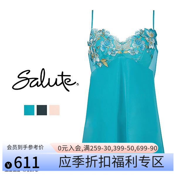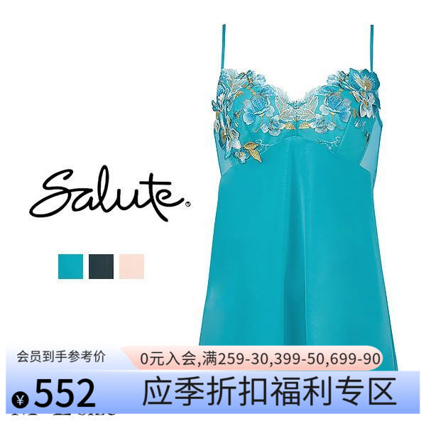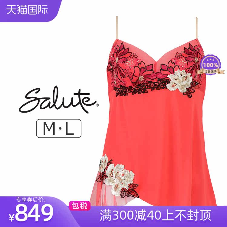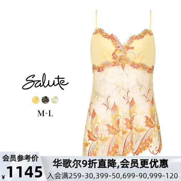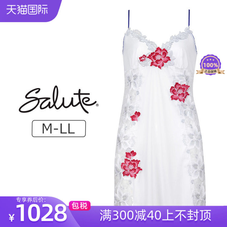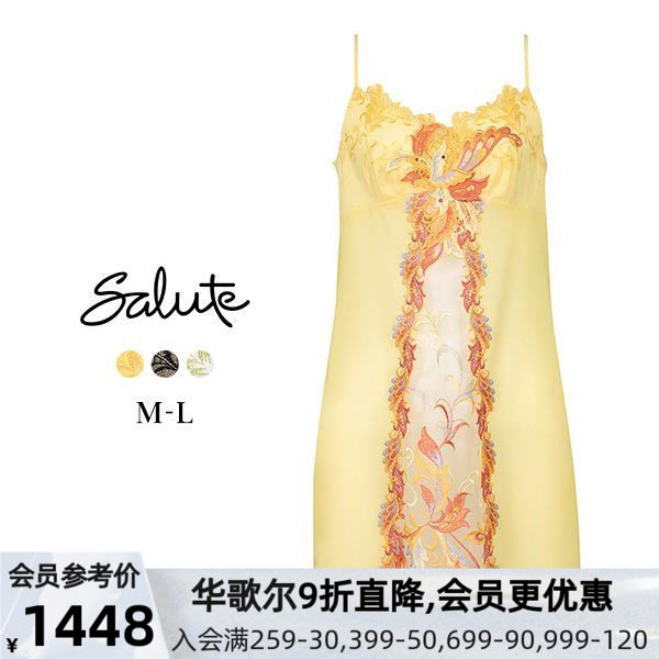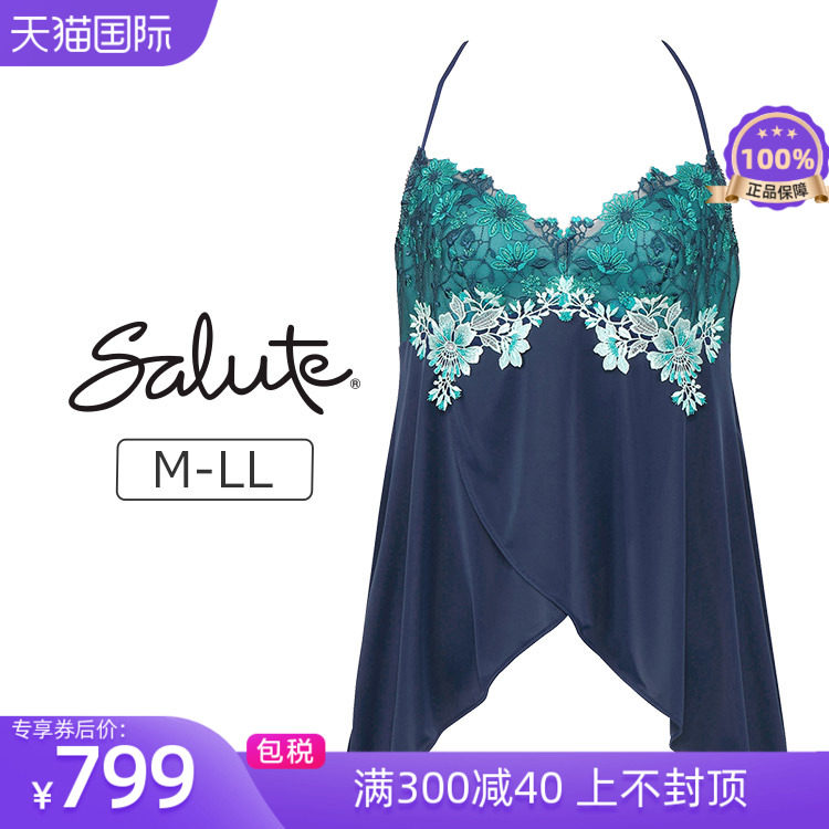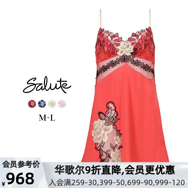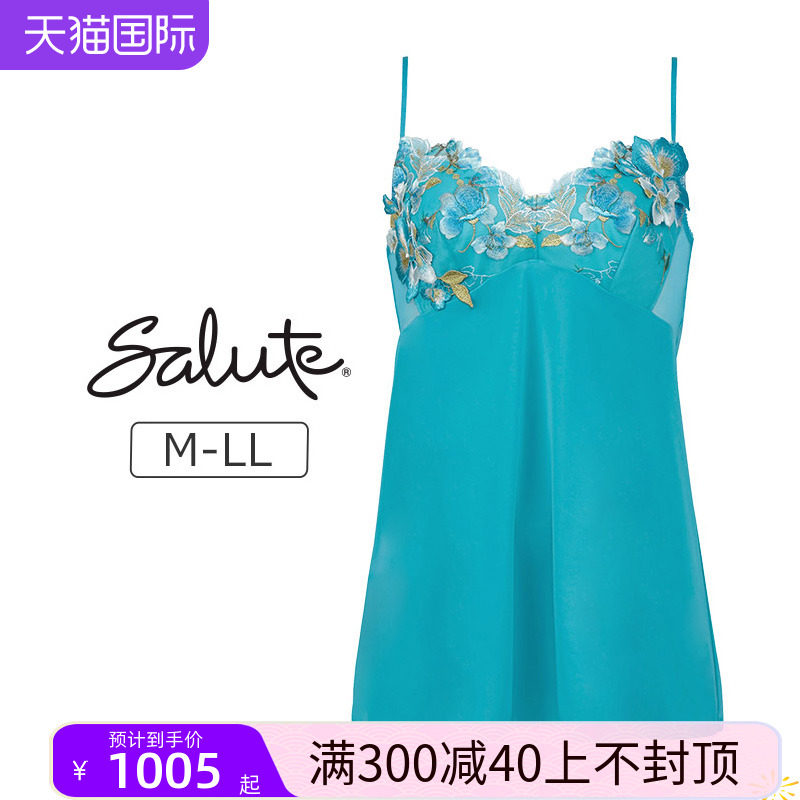 SALUTE日本制 华歌尔性感奢华半透中长款吊带裙 精美刺绣睡裙 202