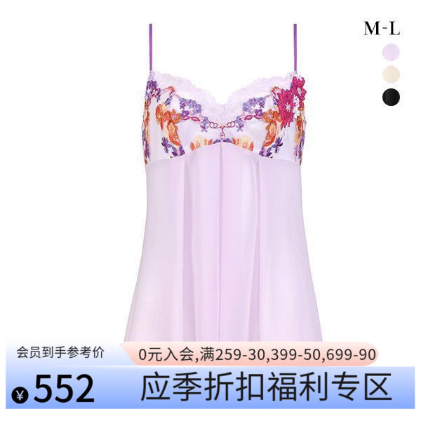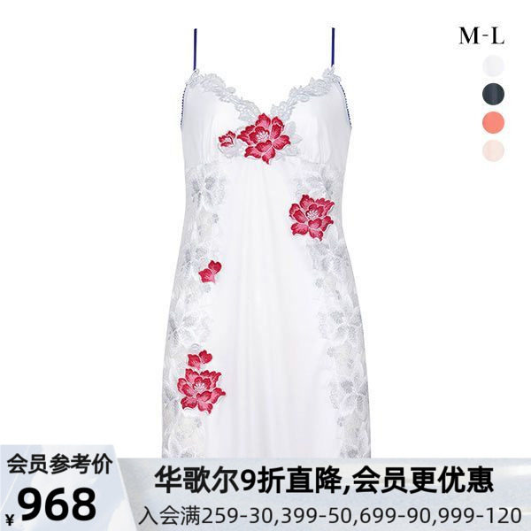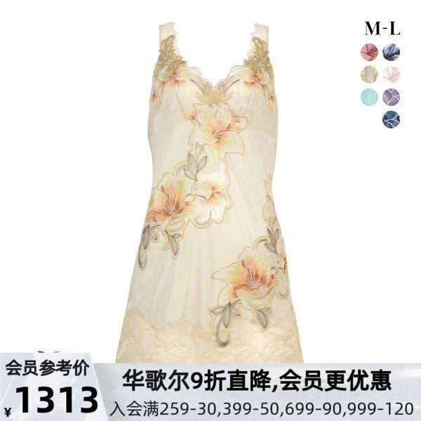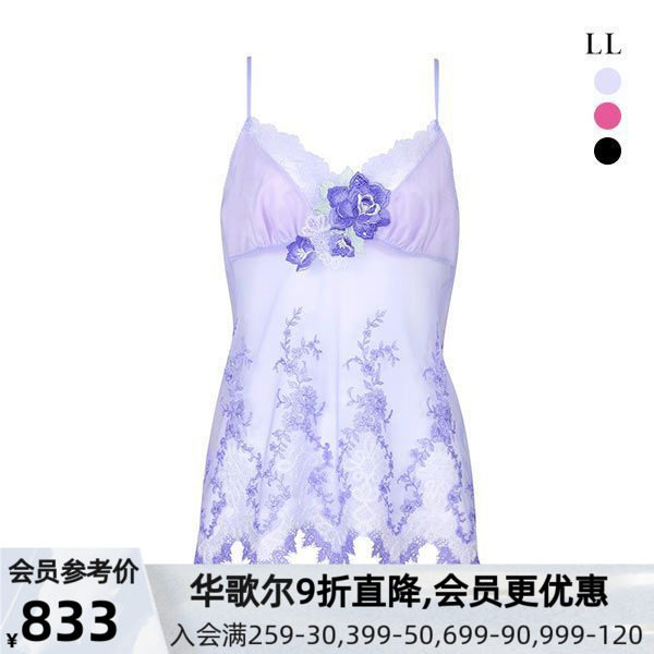新款华歌尔21秋金标WS3321刺绣网纱吊带衬裙睡裙吊牌价988