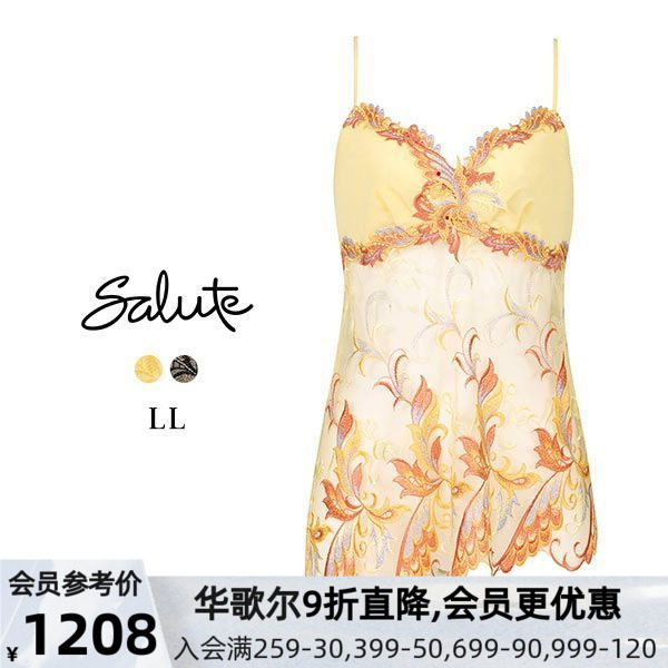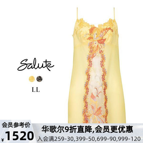 华歌尔Salute女士睡裙幻想鸟羽刺繍透气性感奢华短款吊带71G