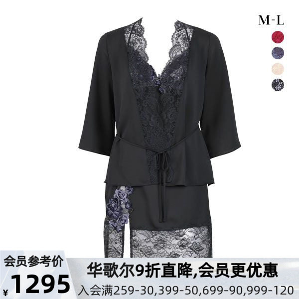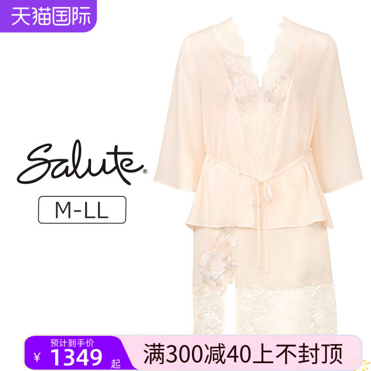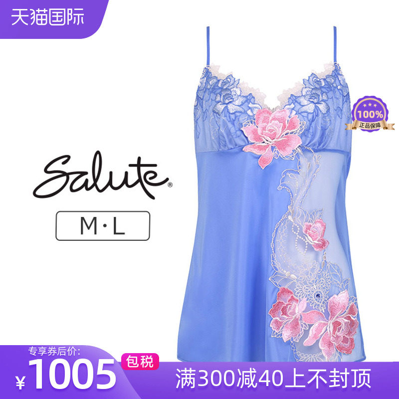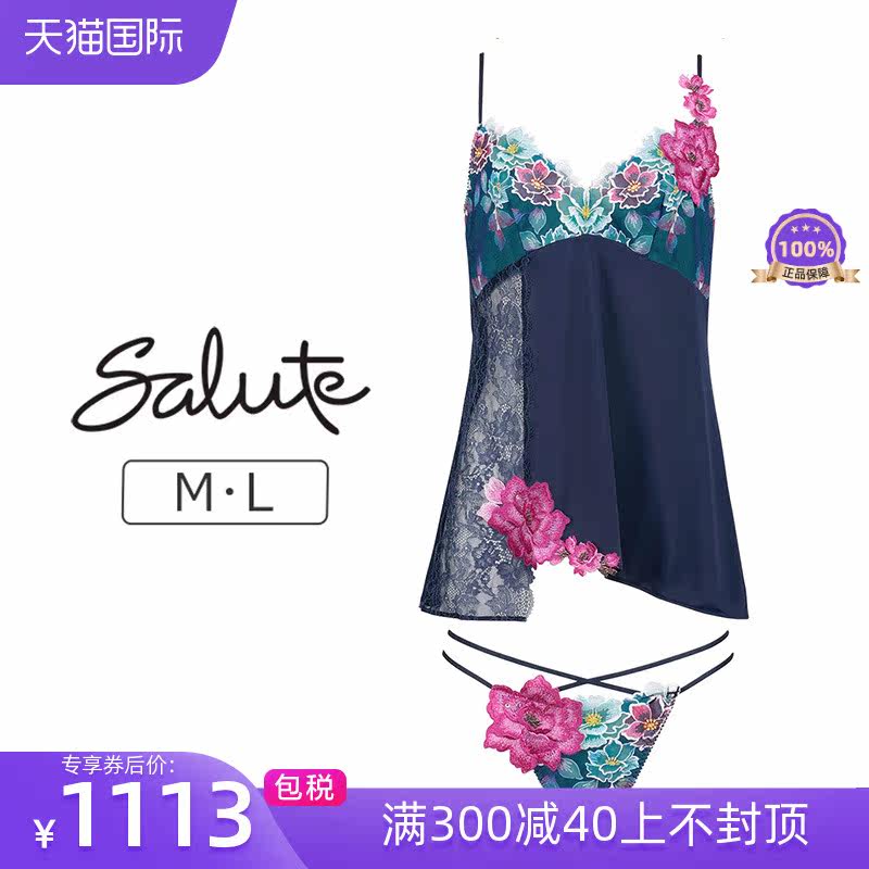 SALUTE日本制 华歌尔性感情趣微透牡丹花刺绣吊带套装奢华睡裙203