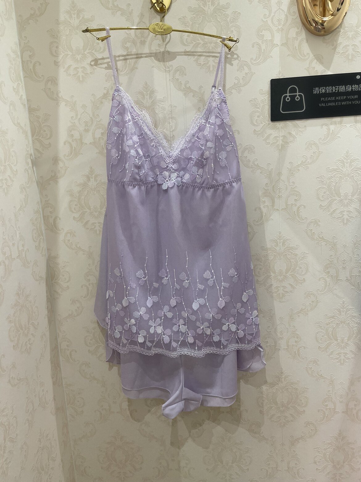 日本华歌尔 性感蕾丝吊带短裙 舒适透气粉紫色拼色优雅睡裙 114