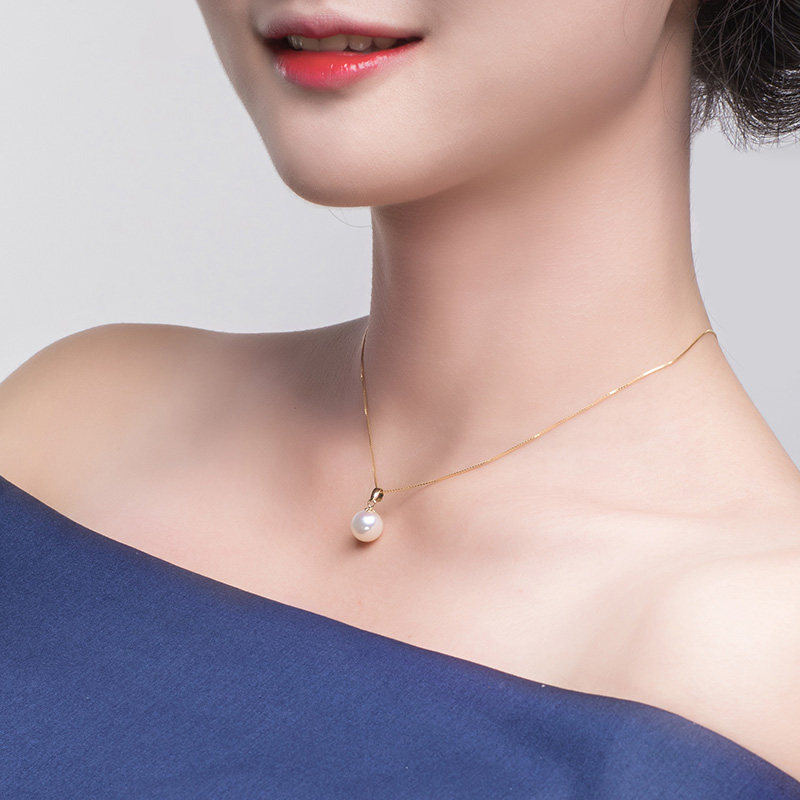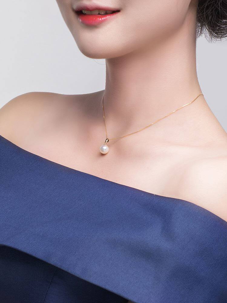 南珠宫轻简 北海合浦18k金海水珍珠吊坠女 白色强光送妈妈 单颗