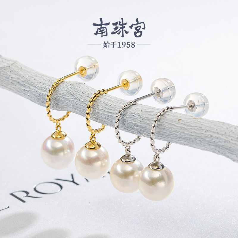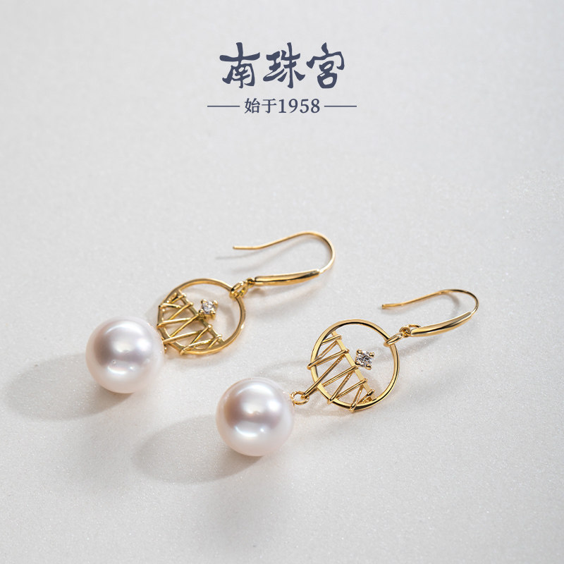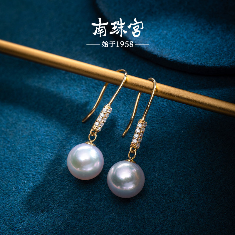 南珠宫18K金海水珍珠耳环长款修饰脸型高亮国产大颗粒 E199KN-J