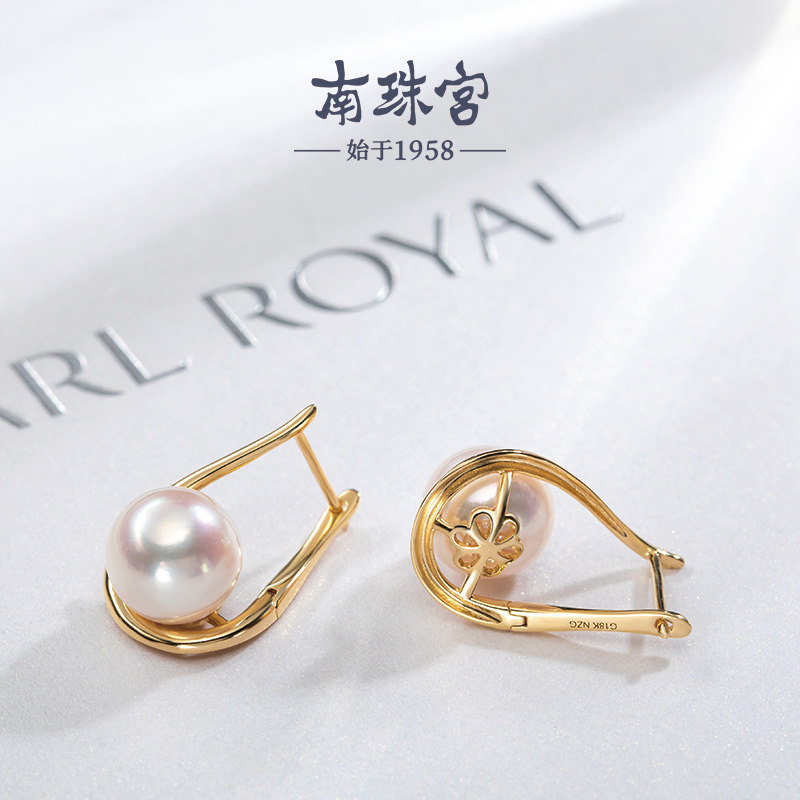 南珠宫18K金海水珍珠耳环高亮国产Akoya耳钉小灯泡厚金 E198KN-J