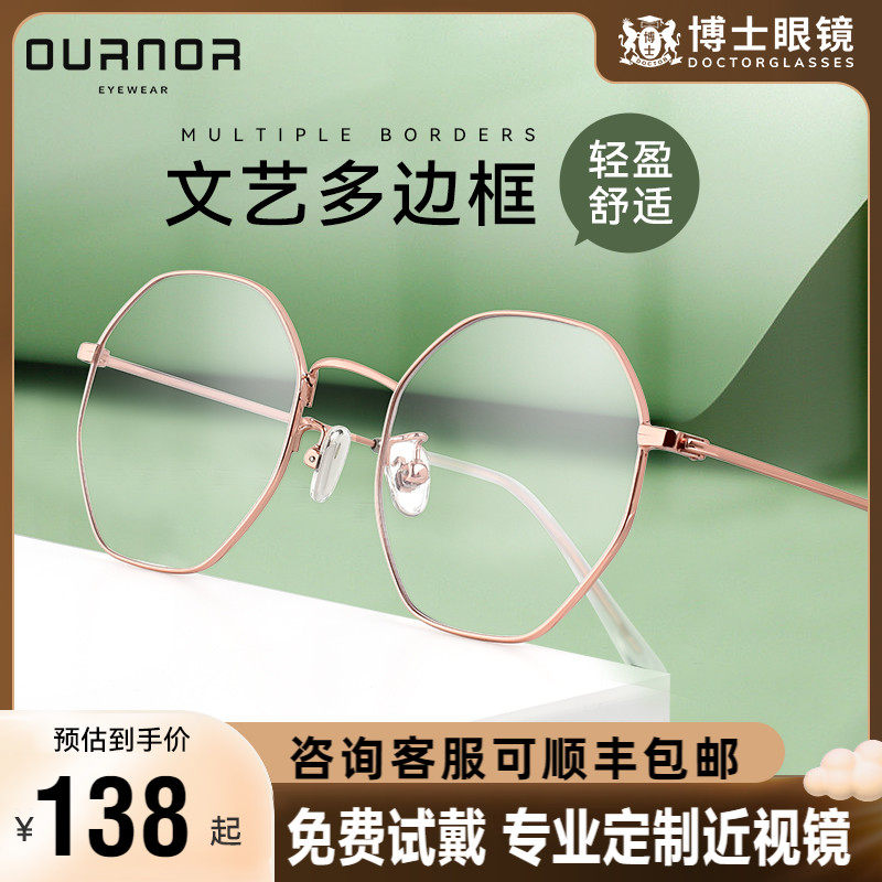 博士眼镜欧拿防蓝光辐射电脑近视女多边形镜框护目平光可配度数男