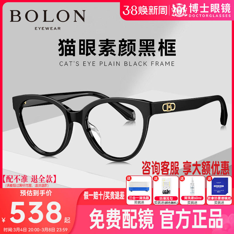 BOLON暴龙眼镜新款板材黑框眼镜架女款猫眼潮近视眼镜框BJ3162
