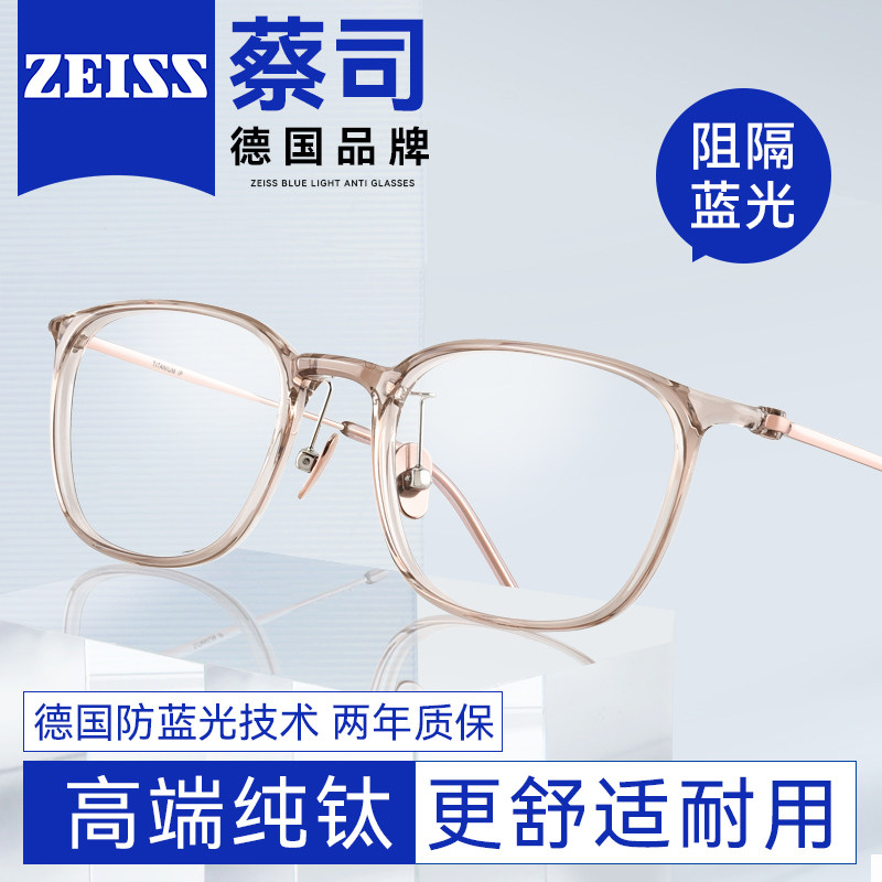 德国蔡司近视眼镜女防蓝光钛架素颜透明色网上配镜框男定制眼镜框
