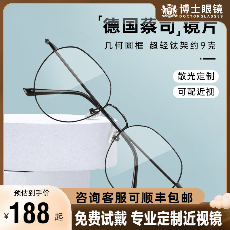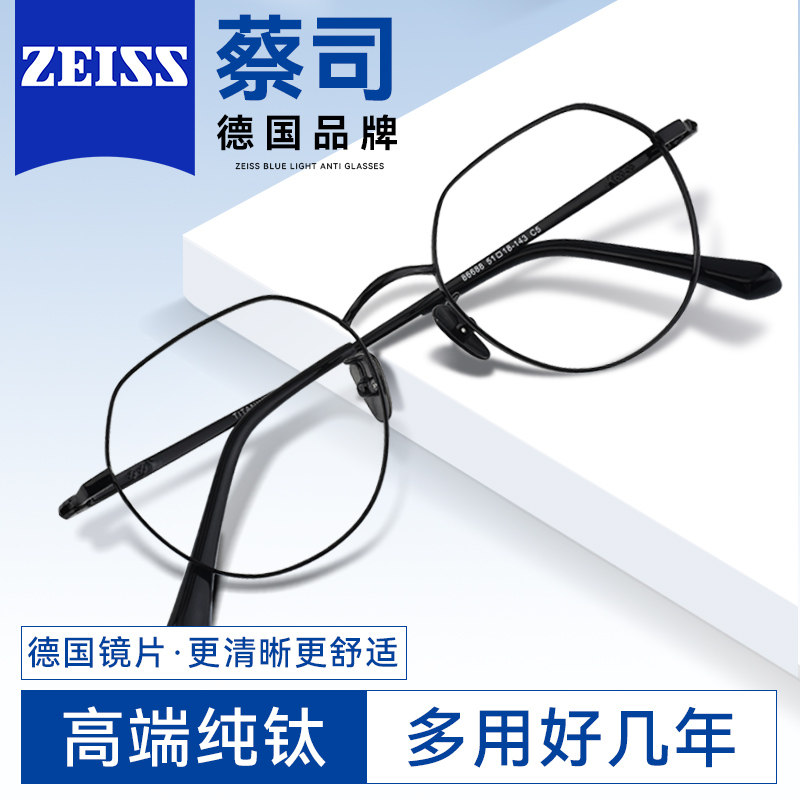 德国蔡司近视眼镜女款钛架可配度数镜片圆框超轻防蓝光眼镜框架男