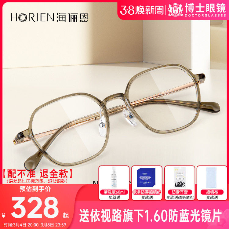 海俪恩眼镜框女款冷茶色眼镜可配度数超轻近视眼镜大脸显瘦镜框男