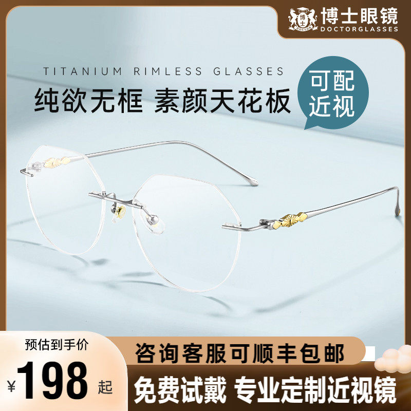 德国蔡司无框近视眼镜女可配度数防蓝光超轻钛架无边框眼睛镜架男